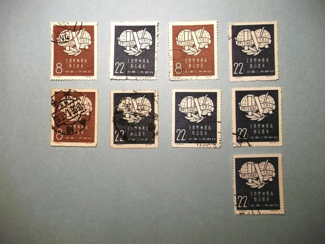 PR China Stamp 1957 C42 Fourth World Trade Union Congress 3 Sets of CTO & Used plus 3 CTO NG F 纪42 世界工会第四次代表大会 2全套4盖销, 1全套旧票, 另加3盖销票