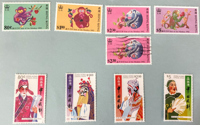 Hong Kong Stamps 香港邮票 --1992 A125 Year of the Monkey, 1992 A129 Chinese Opera, 1992 A126 Summer Olympics, Barcelona, 1992-1996 A127 Queen Elizabeth II Regular Definitive Stamps (Volume 6), 1992 A130 Greetings, 1993 A134 Science and Technology