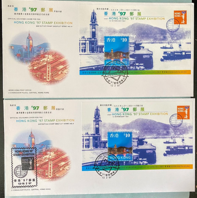 HK A152 '97 Stamp Exhibition, 97-1 Opening Lantau Link, 97-2 Classics Series No.10 Souvenir Sheet FDC