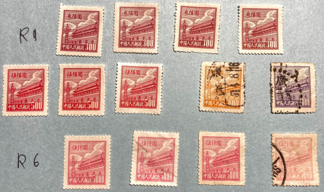 China PRC R1 Regular Definitive Tian An Men (First Print) 25 MNH plus 3 Used 普1 天安门图案普通邮票(第一版)25全新票 加3旧票 Serial No.: R1 Sc#12-20; Years: 1950
