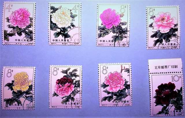 P. R. China Stamps 1964 Flowers Peonies complete Set of 15 CTO OG VF plus 3 used 特61 牡丹 全套 15盖销 背胶拟新 其中二枚带上边厂铭 加3旧