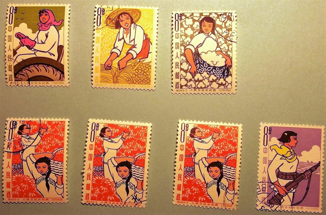 PR China Stamps 1964 S64 Woman of the People's Commune 7 CTO plus 2 old 特64 人民公社女社员 7盖销 加2旧票 S65 Yan'an -Sacred Shrine of the Revolution 7 old 特65 革命圣地—延安 7旧票